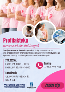 Centrum Medyczne Warszawskiego Uniwersytetu Medycznego zaprasza pracowników Warszawskiego Uniwersytetu Medycznego na warsztaty poświęcone profilaktyce nowotworów kobiecych. Warsztaty mają na celu zwiększenie świadomości